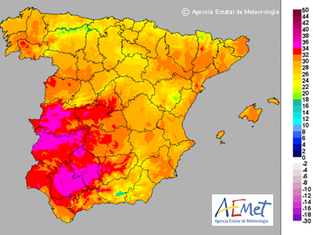 De to hedebølger, som medførte til flere dødsfald, sendte flere steder kviksølvet op over 45, som det var tilfældet langs Guadalquivir. Den varmeste dag var den 11. august, hvor der blev målt 45,9 grader i Sevilla, 44,5 grader i Córdoba og 44,9 grader i Morón de la Frontera.