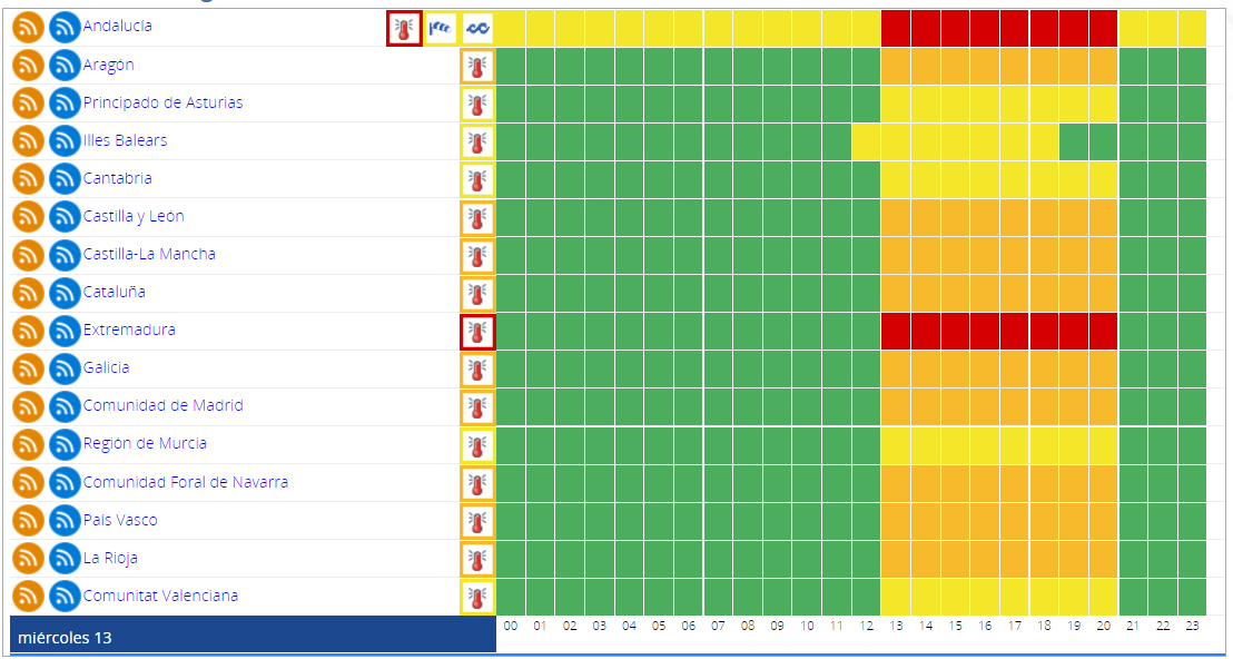 Fortsat varsel om meget høje temperaturer til det meste af halvøen og Mallorca. I nogle områder er man endda helt oppe i rød alarm, da der er udsigt til 44 grader.
