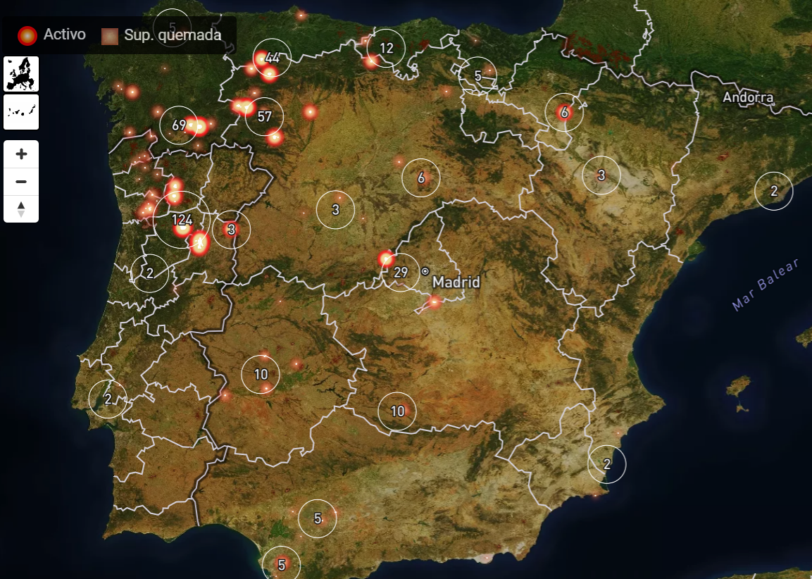 Der er lige nu knastørt og brandvarmt rundt omkring i hele Spanien, og det er en farlig cocktail. Derfor er der også lige nu mange skovbrande rundt omkring: