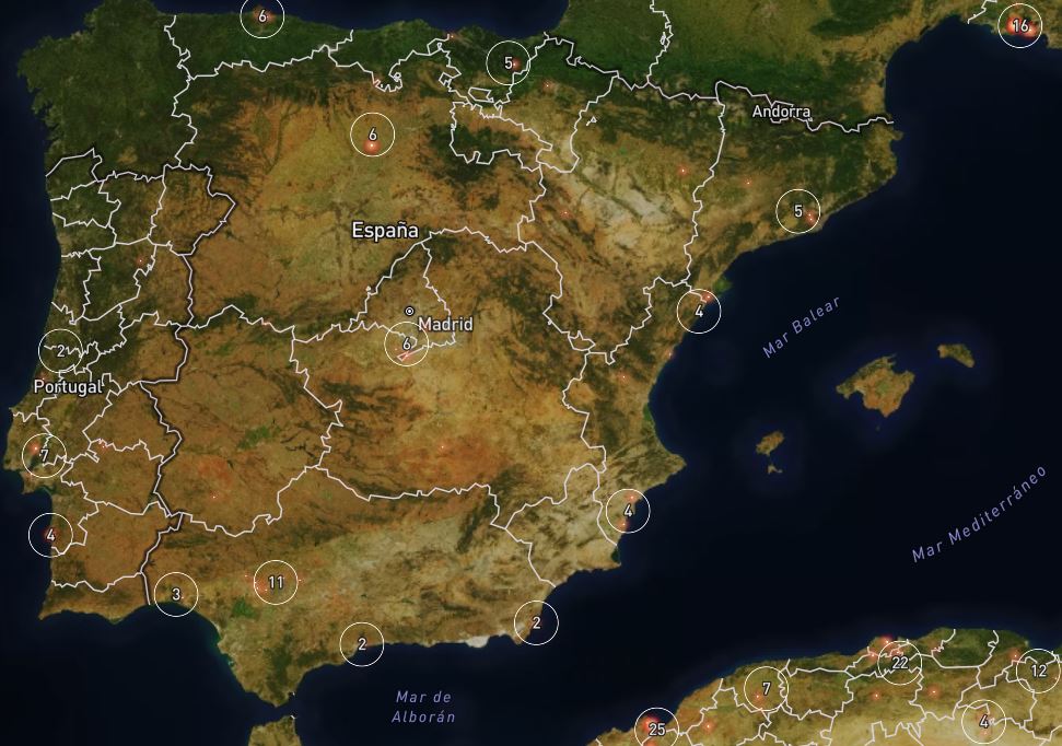 Der er stadig knastørt og brandvarmt rundt omkring i hele Spanien, og det er en farlig cocktail. Derfor har mange regioner også forlænget brandsæsonen til at gælde ind i september også. Den meget høje luftfugtighed i den seneste tid har dog hjulpet gevaldigt, så flere storbrand er kommet under kontrol, og der er nu kun en håndfuld aktive skovbrande.