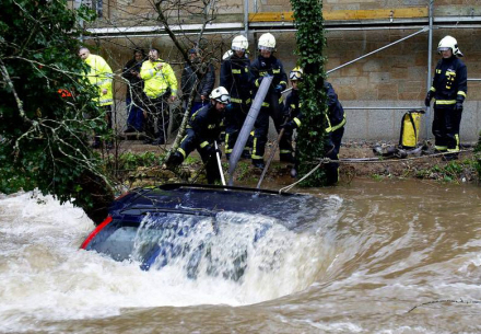 Den kraftige nedbør i de sidste to uger har fået adskillige floder til at gå over bredderne. I Santiago har stigende vandstand i floden Río Sar trukket en bil med sig, der holdt parkeret lige ved pladsen Multiusos Fontes do Sar. Der var heldigvis ingen mennesker i bilen, da den blev trukket med af vandet, og det lykkedes bagefter brandvæsnet at få bilen bugseret i land.