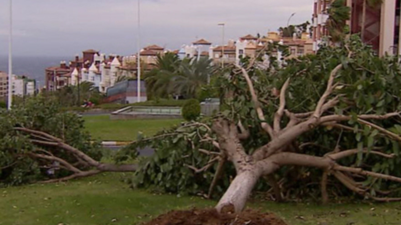 Der er også rapporter om træer og grene, der er blæst ned over vejene i San Miguel, La Orotava og Adeje på Tenerife. I Las Caletillas på motorvej TF-1 skete der et jordskred i dag. En 60-årig mand har lidt mindre kvæstelser, efter et vindue blæste ind Santa Cruz de Tenerife.