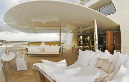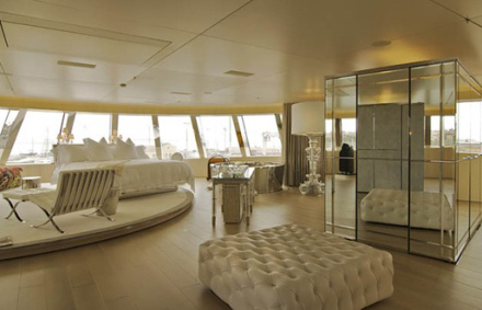 Gæster har hele seks suiter at vælge imellem med alle bekvemmeligheder, der er et bibliotek med 2.000 DVD-film, et discotek til uforglemmelige fester, to swimmingpool, helikopterlandingsplads og boblebad på dækket.