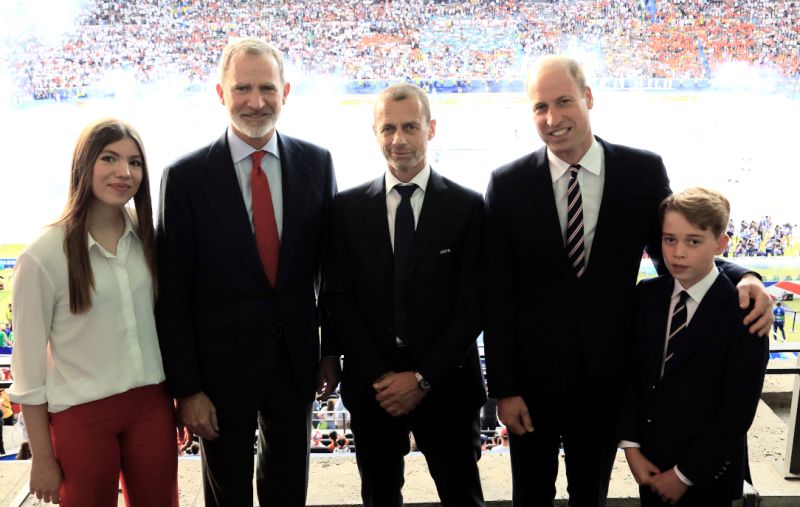 Præsidenten for UEF, Aleksander Ceferin, med æresgæsterne Kong Felipe, infanta Spfía, kronprins William, og hans søn prins George