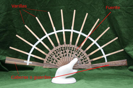Stoffet eller det papir, der udgør den øverste del af viften hedder ”país” – fra ordet ”paisaje”, (udsigt eller landskab), en halvcirkelformet del, ofte malet i flotte mønstre og farver.