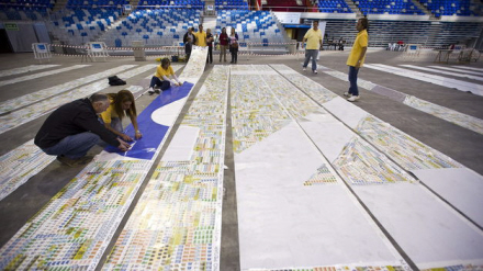 Den nationale posthus, Correos, har organiseret begivenheden og håber på at får ”moasikket” et enormt 'ñ' af omkring 200.000 frimærker. Bogstavet skal ses som et symbol på Spanien.