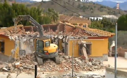 Det første af i alt 300 ulovlige byggerier i Málaga blev fredag jævnet med jorden under store protester fra naboerne, hvor flere hundrede var mødt op for at støtte familien, der fik ødelagt deres hjem.