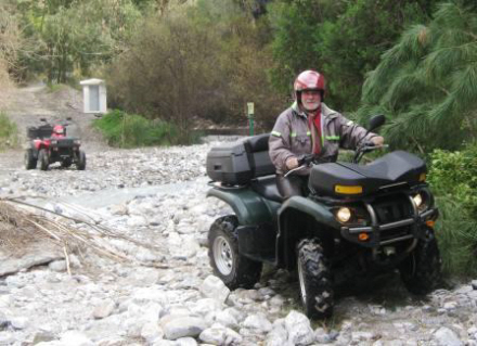 Som før omtalt bruger vi en del tid oppe på ”de smalle hylder” i bjergene omkring os på vores to ATV'er. Selv med Jeannes halvsidelammelse er det muligt at komme ud i den vilde natur med en fire-hjulet motorcykel med automatgear. For os har det været – og er – fantastisk at opdage, at Jeannes handicap bliver elimineret, når to hjul bliver byttet ud med fire.
