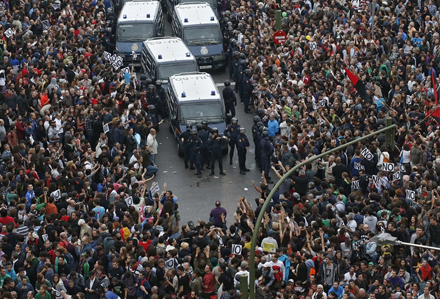 Nogle af de alvorligste gadekampe nogensinde i Madrid opstod, da flere tusinde demonstranter i aftes mødte op for at deltage i den varslede demonstration ”25S - Omring Kongressen”.