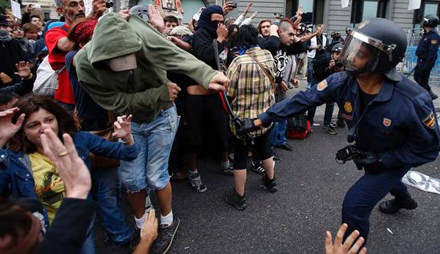 Politistaven var ikke det eneste våben politiet tog i brug mod demonstranterne. Politiets beslutning om at skyde med gummikugler viser, at urolighederne udviklede sig til noget af det voldsomste, der har udspillet sig i den spanske hovedstad i mange år.