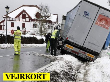 Flere veje blev i går helt spærret af, og 1.400 elever i Castilla y Leon slap i går for at komme i skole, efter at store dele af Nordspanien blev ramt af et kraftigt vintervejr med sne, blæst og is-glatte veje. Se video længere nede