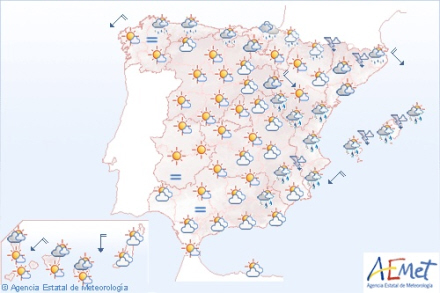 Der kan falde op til 35 mm i Almería, Granada, Jaén, Teruel, Albacete, Cuenca, Alicante, Castellón, Valencia, Murcia, Mallorca, Menorca, Ibiza og Formentera.