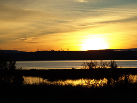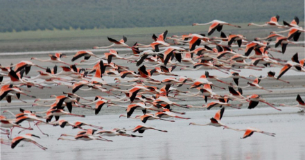 Med foråret ankommer flamingoerne i tusindvis og besætter de midterste sandbanker i søen. Ved solnedgang er det et fantastisk syn med deres langstrakte og elegante silhuetter.