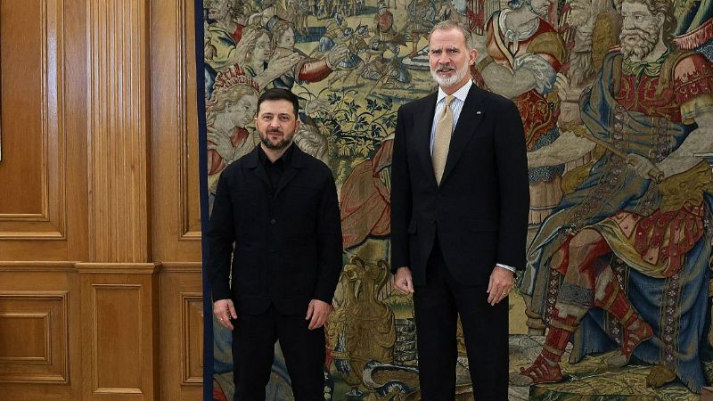 Ukraines præsident, Volodymyr Zelensky, blev igår modtaget af kong Felipe VI i Zarzuela-paladset som en del af sin tredje visit til Spanien siden Ruslands invasion. Den officielle rejse har til formål at skaffe mere militær hjælp til hans land under krigen.